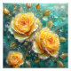 The image presents a vibrant and visually stunning arrangement of yellow roses, surrounded by a shimmering backdrop. The roses are depicted in full bloom, showcasing delicate petals that blend shades of yellow and gold, with intricate details highlighting their textures.