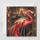 This striking illustration showcases a vibrant pink flamingo set against a bold Art Deco backdrop. The flamingo is depicted with stylized feathers in shades of pink, red, and gold, its elegant form accentuated by long, slender legs and a gracefully curved neck. The background features classic Art Deco elements, including geometric shapes, radiating lines, and a rich palette of black, gold, and deep red tones. The overall design exudes a sense of vintage glamour and exotic sophistication, characteristic of the Art Deco era.