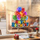 Add a splash of colour to your celebration with this playful Happy Birthday window cling featuring a cluster of vibrant balloons and a fun, multicolored font. Perfect for kids' parties or anyone who loves a cheerful and bold look, this window cling easily adheres to windows and smooth surfaces, creating an eye-catching display without damaging the surface. Reusable and durable, it's an excellent addition to your birthday decor for adding extra excitement and festive flair to any party venue.