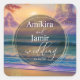 Vibrant Beach Background Faux Glitter Wedding Square Sticker