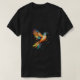 This smart black T-shirt boasts an impressive design of a colourful bird in flight, with tints bursting across such colours as orange, yellow, and teal. What really makes this particular piece pop is the dynamics of the exploding colours of the bird, relating to energy and freedom. Nature and art lovers alike will appreciate this. Perfect for anyone who loves bold, artistic expressions on casual wear, this tee adds creativity to any kind of wardrobe.