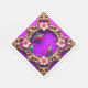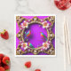 Brightly coloured birds framed by an ornate golden border decorated with pearls and blossoms against a vivid purple background, creating a luxurious and elegant artistic composition.