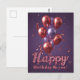 Looking for the perfect way to send birthday wishes that stand out? Look no further! Our customisable postcard is here to make every celebration extra special. The design features a vibrant bouquet of metallic balloons in rich shades of rose gold and lavender, floating gracefully against a deep purple background. The text "Happy" is written in a sparkling, glittery font and "Birthday to you!" in a bold customisable typeface.