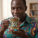 The mug showcases vibrant Afro-inspired graphics, including traditional patterns, symbolic motifs, and dynamic colours. The design celebrates the beauty and creativity of Afro culture, making it a standout piece in any kitchen or office.