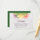 This elegant floral details card features vibrant blooms with the words "details" in trendy script all against a pale marble background on the front and a green colour back side.