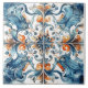 A stunning arrangement of intricately designed tiles showcases swirling blue and orange motifs. Each tile combines elegant curves and floral elements, capturing the beauty of traditional craftsmanship. This artwork adds a vibrant touch to any space.