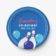 Vibrant Blue and Red Bowling 6th Birthday Paper Plate