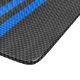 A sporty vibrant sky blue racing stripes accent in black carbon fibre style design decor. The carbon fibre print look suits automotive, modern, and industrial tastes and the vibrant vertical lines make for a dynamic design.