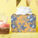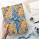 This is a botanical style image featuring an intricate pattern of blue flowers and foliage set against a vibrant orange background. The detailed floral design exudes elegance and sophistication, with each bloom meticulously rendered to capture its natural beauty. The contrast between the cool blues and warm oranges creates a striking visual appeal that can add a touch of whimsy and charm to any space. Perfect for those looking to infuse their decor with bold colours and classic floral motifs.