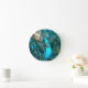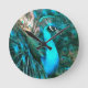 Vibrant Blue Peacock In With Fanned Tail Round Clock