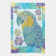 Vibrant Blue Yellow Macaw Floral Illustration Tea Towel