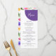 Elements: tropical floral wreaths surrounding your names an tetail. Names are in a whimsical script, while details are in a modern sans serif font. Colours: purple, pink, yellow, green, orchid, plum, magenta, fuschia, lemon, Themes: bright, tropical, beach, destination, romantic, bohemian, cheerful, modern, casual. Collection: Vibrant Casual Magenta Violet Yellow Wedding Collection Product Type: Menu
