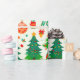 Colourful Christmas themed seamless pattern with festive trees, ornaments, bows, gifts, stars, candy canes, and seasonal decorations designed with a cheerful and whimsical holiday theme on a light background.