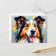 Vibrant Collie Dog Watercolor Portrait Postcard