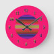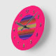 If you love colour, then this is a must-have wall clock! Features a vibrant circle of horizontal striped rainbow hues exploding in the centre of the clock, and around the outer perimeter is an equally vibrant deep pink! Numerals are easy to read, and also colourful. Great gift for the artist in your life!
