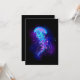 Large, blue, artistically drawn, glowing, bright jellyfish, with long tentacles on black background with purple bioluminescence. Luminous jellyfish.