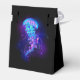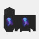 Large, blue, artistically drawn, glowing, bright jellyfish, with long tentacles on black background with purple bioluminescence. Luminous jellyfish.