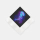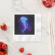 Large, blue, artistically drawn, glowing, bright jellyfish, with long tentacles on black background with purple bioluminescence. Luminous jellyfish.
