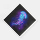 Large, blue, artistically drawn, glowing, bright jellyfish, with long tentacles on black background with purple bioluminescence. Luminous jellyfish.