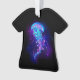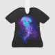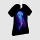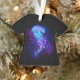 Large, blue, artistically drawn, glowing, bright jellyfish, with long tentacles on black background with purple bioluminescence. Luminous jellyfish.