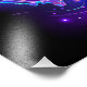 Large, blue, artistically drawn, glowing, bright jellyfish, with long tentacles on black background with purple bioluminescence. Luminous jellyfish.