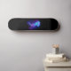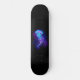 Large, blue, artistically drawn, glowing, bright jellyfish, with long tentacles on black background with purple bioluminescence. Luminous jellyfish.