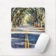 Vibrant watercolor mousepad featuring serene scenic street, trees arched over road, rich colours, and peaceful natural surroundings.