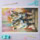 This digital artwork, titled “Vibrant Wilderness,” captures the playful spirit of two lion cubs through an abstract and colourful style. The cubs are adorned with strokes of blue, orange, yellow, and green, conveying a sense of youthful curiosity and companionship. The whimsical atmosphere is further enhanced by the vertical streaks of various colours in the background, creating a lively and dynamic scene.