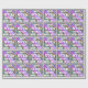 This fun birthday-themed wrapping paper design features a message like "HAPPY 97th BIRTHDAY, NAME-HERE!", where the name can be customised. The background features a vibrant, multicolored stripes pattern. The message text is coloured white, and has a distressed appearance. Wrapping paper like this could perhaps be used when wrapping gifts or presents being given to somebody who is celebrating their ninety seventh birthday. [~Z0000272]