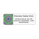 This return address label design features a vibrant and eyecatching pattern consisting of colourful circles or rings. It also features a personalised person, family or business name, above a personalised mailing address.