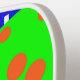 Vibrant orange, yellow, & green, pickleballs on a blue court. Great for anyone wanting to stand out on the pickleball court in the best of ways.
