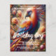 Birthday Boy! Invite friends and family to your birthday party with this simple A colourful Condor bird perches gracefully on a tree branch, showcasing its vibrant plumage against a clear sky backdrop.