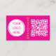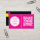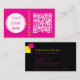 A sleak modern design with bold contrast colours of hot pink, black and yellow. Simple and modern. All the contact information you need: name, titel, social media, address, phone, website and e-mail. Classic business card but with a vibrant colour combination. Add your own logo and QR code.