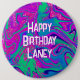 My daughter and I created this cool swirl design in bright teal green, purple, blue and hot pink. We added some faux glitter for a sparkle effect. It creates the perfect decoration for your amazing slime party birthday party. This editable button says, "Happy Birthday Laney" in fun script. Add the birthday child's name to personalised this birthday party button. Or you can customise the text to other words on the groovy rainbow swirls. This round button pin can be used for a slime party or just a trendy bright birthday celebration. I hope you have a fabulous party starting with this unique original design. Look for other slime birthday party products in my collection.