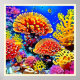 Experience the emotional beauty of the ocean with this stunning, vibrant artwork. It captures a bustling marine dreamscape featuring colourful coral blooms and exotic fish, creating a truly lively and engaging underwater scene. The neon orange and yellow corals glow against the deep blue, showcasing the magic of the sea. While the initial design utilised AI technology, it was then carefully edited by a skilled artist to ensure its uniqueness and exceptional creativity. This striking piece is a perfect focal point for any space, bringing tropical energy and deep-sea wonder home. Place your order today and embrace the joy of owning this captivating marine portrait!