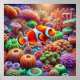 Colourful underwater scene of a clownfish swimming among a lively coral reef, showcasing tropical marine biodiversity under sunlit waters.