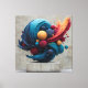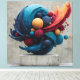 A cracked turquoise sphere erupts in thick, swirling waves of textured color, releasing a cascade of glossy orbs in electric teal, cobalt blue, fiery orange, deep red, mustard yellow, terracotta, lavender, and burgundy. Dramatic ribbons of flame-like red-orange-gold twist outward while metallic flecks catch light across every surface, creating intense motion, joyful chaos, and harmonious energy frozen in form. Perfect for modern living rooms, home offices, creative studios, entryways, minimalist galleries, or as striking gifts for art collectors, interior design lovers, or anyone drawn to bold, colorful abstracts, kinetic sculpture vibes, emotional expression, or high-impact contemporary decor.