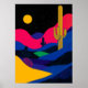 A vibrant and abstract illustration depicting a desert landscape under a starry night sky. The cacti and colourful waves are rendered in a modern style, highlighting the connection between nature and art. Perfect for fans of contemporary design and creative decor.