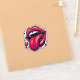 Vivid and striking, the artwork showcases a pair of luscious lips in vibrant red, with a playful tongue extending outward.