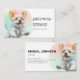This eye-catching business card features a joyful puppy with a colourful pastel watercolor background, creating a friendly and approachable design. Perfect for promoting your grooming services, it combines charm and professionalism to leave a lasting impression on clients. A delightful way to showcase your dedication to pet care!