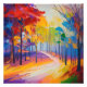 This eye-catching landscape art print captures the beauty of fall foliage in all its glory. Rich reds, oranges, and yellows blaze across the canvas, creating a stunning visual display. The winding road through the trees adds a touch of mystery and invites the viewer to explore further. This vibrant piece is sure to add a touch of fall magic to any home or office.
