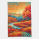 Vibrant Fall River Scene Tea Towel