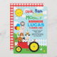 This cute & colorful design features illustration of adorable farm animals on a tractor. You can easily personalize the invite with your details. For more advanced customization of this design, simply select the "Customize Further" button. © Blue Bunny Studio