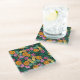 Vibrant Floral: Green Background Vintage. Glass Coaster