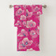Vibrant Floral Pattern in Pink, White & Royal Blue Bath Towel Set