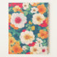 A cheerful and vibrant notebook cover featuring a lively floral pattern. The design is filled with large blossoms in creamy white and warm orange, complemented by smaller red and yellow flowers. A deep teal or navy blue background provides a beautiful contrast, making the warm colours of the flowers pop. This cover is perfect for anyone who loves nature and wants to add a touch of colour and artistry to their daily notes and plans.