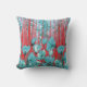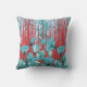 Vibrant floral pattern with turquoise flowers, red cushion