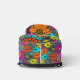This is a show-stopping sling bag with bold floral paintings in shades of orange, pink, blue, and yellow flowers contrasted against a black and white zebra stripe. It is a great casual-day bag that styles and functions very well, with a front zipper pocket and an adjustable strap for convenience.