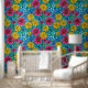 Vibrant flowers Pink Yellow Blue Lovely pattern Wallpaper