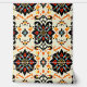Transform your space with this stunning and intricate folk art wallpaper. Featuring a symmetrical repeating pattern of stylised floral medallions and ornate flourishes, this design is reminiscent of traditional damask, Spanish tiles, and bohemian textiles. A vibrant colour palette of fiery red, bold orange, and cool turquoise pops against the dramatic black details and warm cream background. Perfect for creating an eye-catching accent wall or decorating an entire room, this wallpaper brings an energetic, artistic, and worldly feel to any interior.